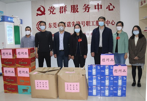 東莞市大朗鎮(zhèn)人大、總工會等單位向以諾通訊贈送防疫保障物資
